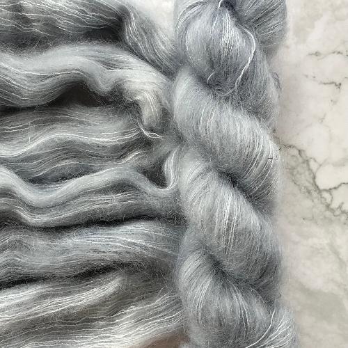 The softest of murrant silk and mohair blends; use alone or in combination with another fiber to give a halo of lightness to any project, you will feel like you are knitting a cloud.