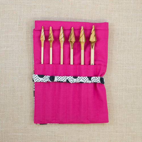 A beautiful and finely crafted gift set for your favorite crochet artist or yourself! Includes Nirvana Needle Arts finely crafted 7" maple crochet hooks in sizes F/3.75mm; G/4mm; GH/4.5mm; H/5mm; I/5.5mm; J/6mm. Elegant and satin smooth they will not snag your yarn, cord or floss Also includes a Nirvana Needle Arts 7" Needle and Hook Case. Designed by Nirvana Needle Arts and manufactured by della Q, this needle and hook case is perfect for storing and transporting needles and hooks up to 7" in length. The case has 12 pockets and a flap to keep all of your items protected and then it can be rolled or folded and secured with the elastic band.
